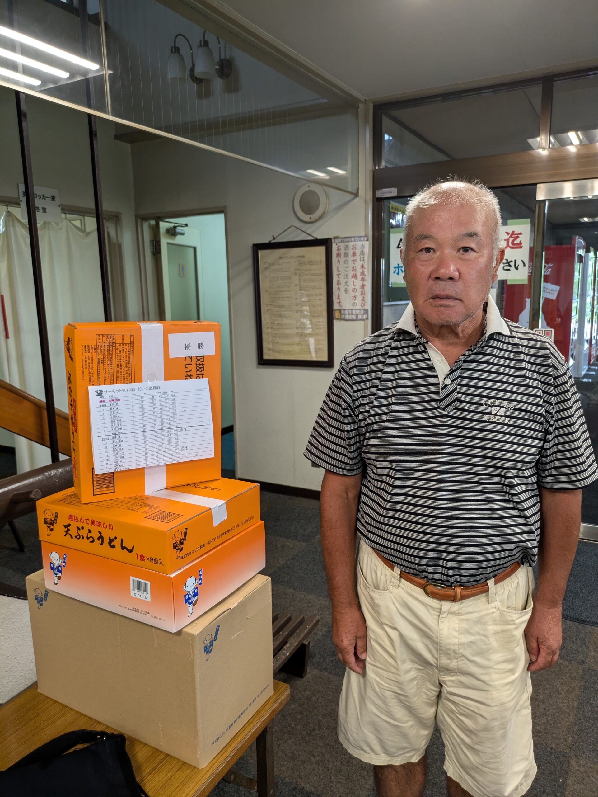 競技の結果、優勝は、山本嘉一郎さん(グロス82/NET67.6)、ベストグロス(アウト39 イン35 グロス74)は、